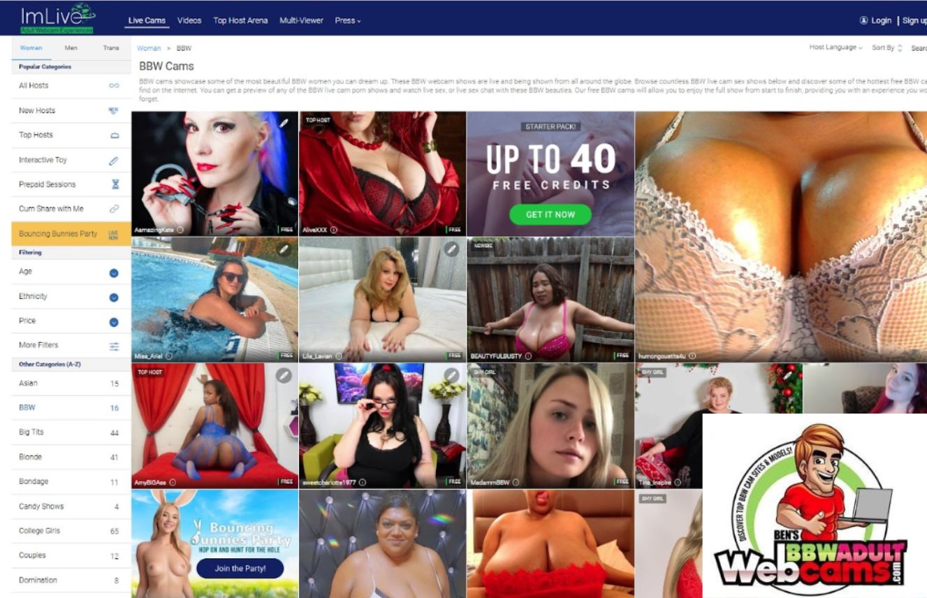 ![]() ![]() ![]() ![]() ![]() ![]() ![]() ![]() ![]() ![]() ![]() ![]() ![]() | ImLive.com brings all kinds of BBW cam models, porn stars, amateur college cam girls, horny housewives, celebrities, and milfs in one platform for webcam sex. If we compare ImLive to others, this is far better in rates, quality of streamers, and mobile cams.